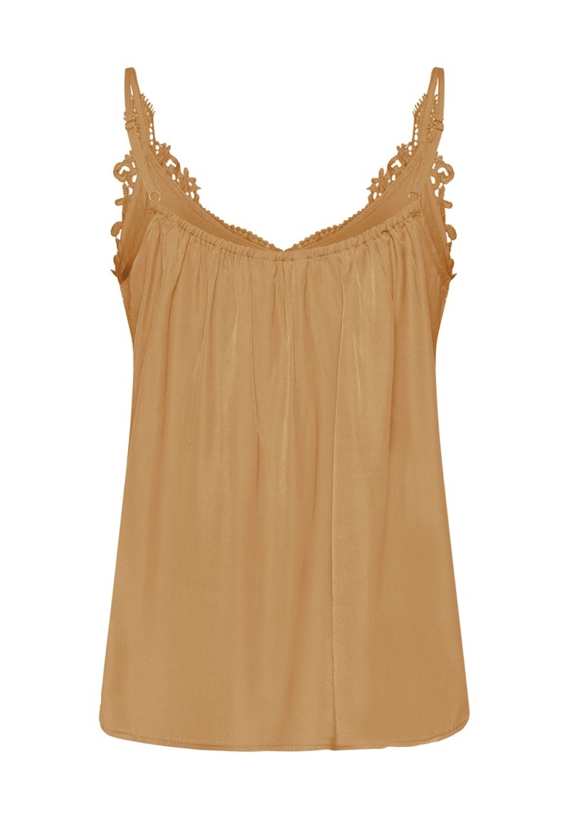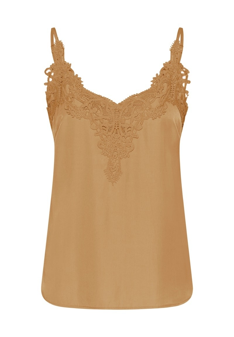 This women's camisole top features a regular fit with a delicate V-neckline and lace trim detail. Adjustable spaghetti straps ensure comfort for both casual and elegant occasions. Ideal for versatile outfit combinations.