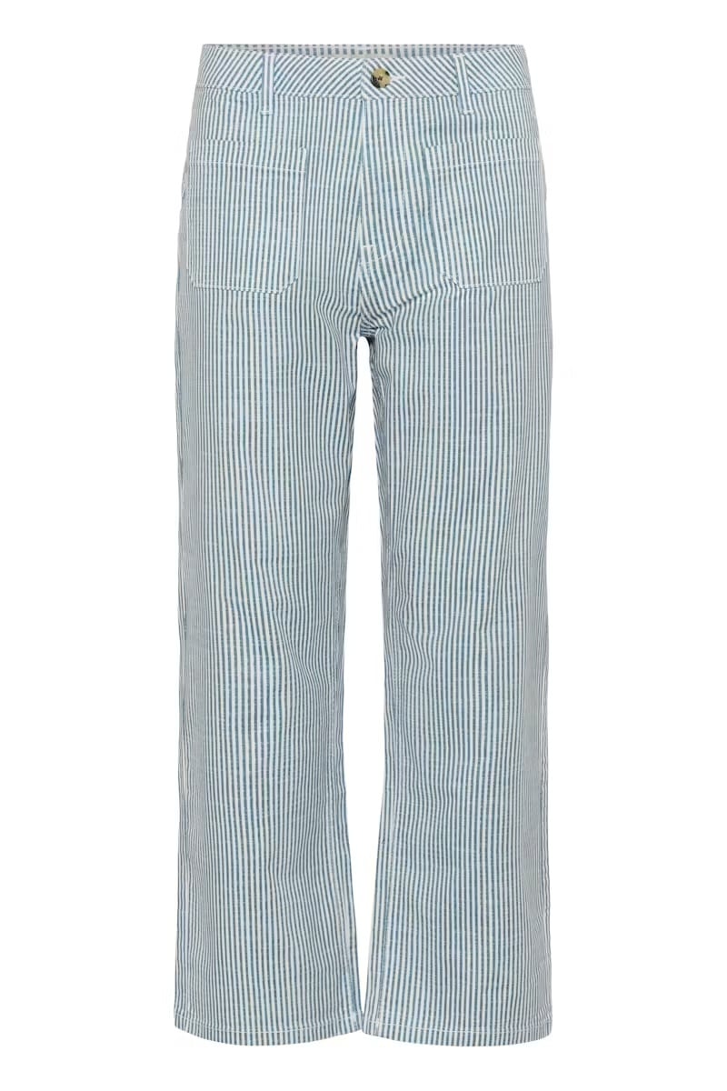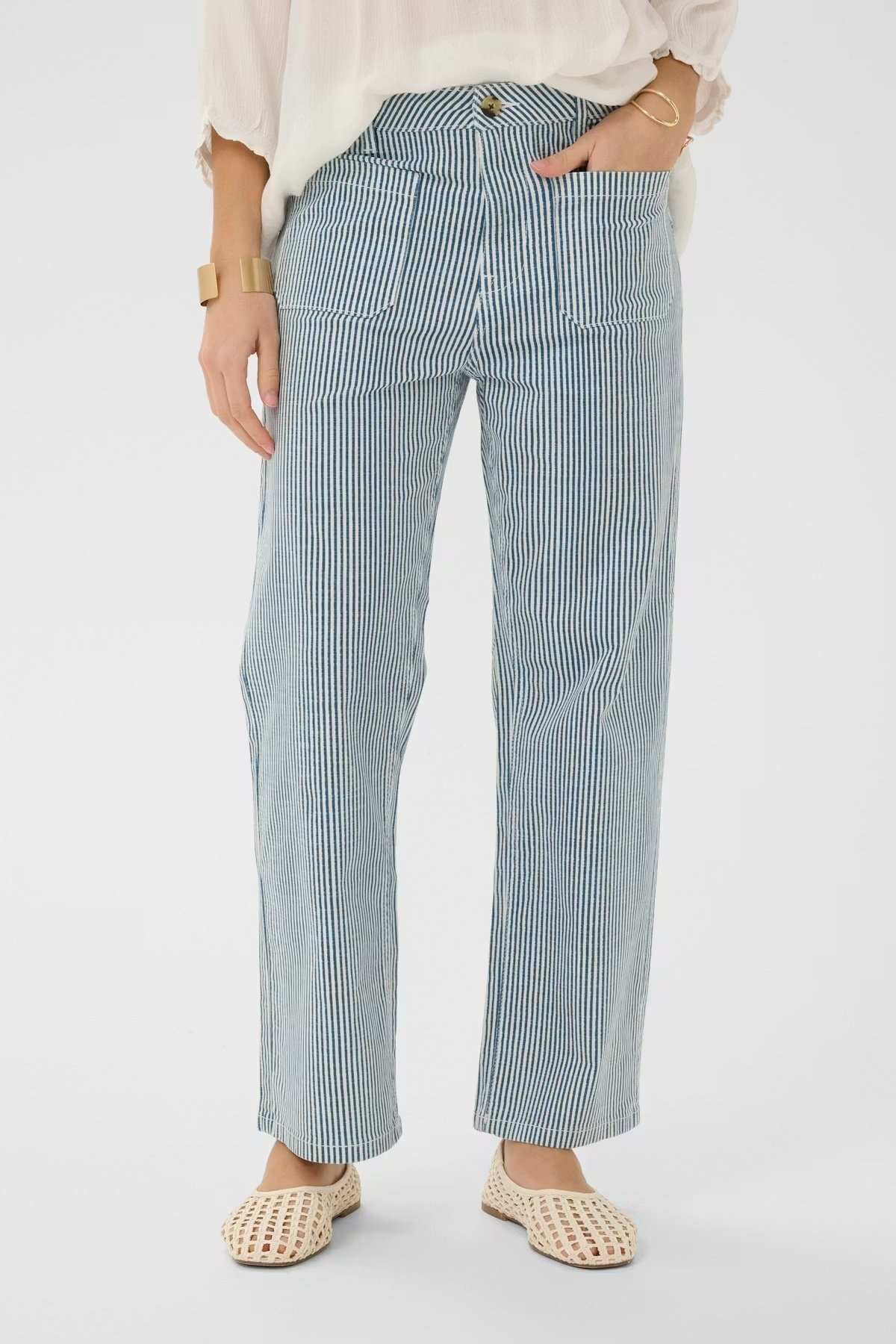 Straight leg trousers feature a regular fit with a mid-rise waist and full length. Designed with prominent front patch pockets and belt loops. Smooth appearance with a classic button closure at the waistband. Minimalist and versatile style.