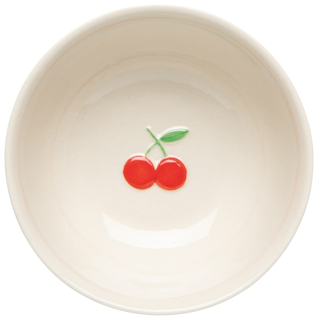 A fresh style and retro flair is at the core of our Petite Motif Cherry bowl, where a fruity icon adds effortless taste to the table. Fresh, fun, and chic—the Petite Motif collection keeps it simple with a bold embossed fruit design on a sleek ivory base