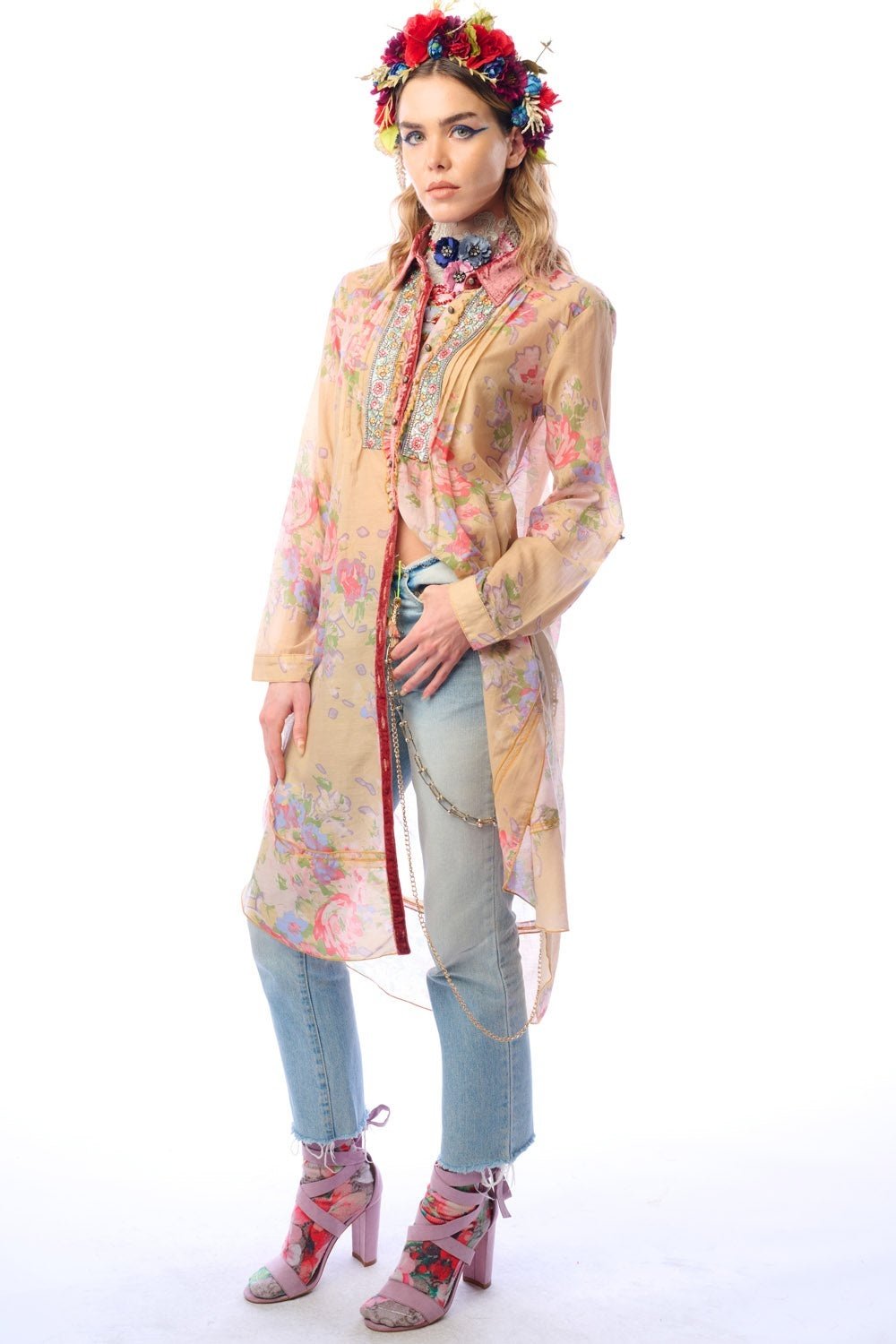Aratta Garden Of Eden Embroidered Mesh Duster