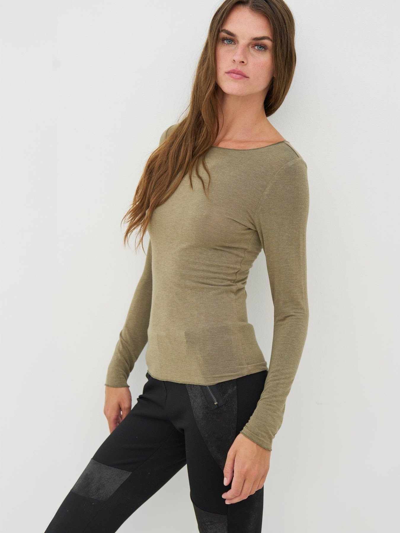 This basic blouse has a simple and timeless look with long sleeves and a round neck. The fit is lightly tailored and follows the body in a comfortable way.