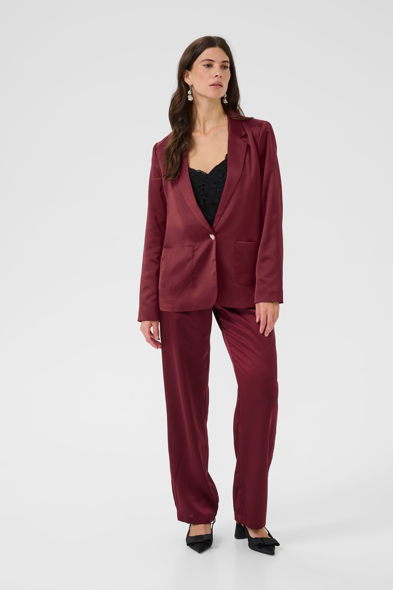 This tailored satin blazer for women features a sleek single-button closure, classic lapel collar, and practical front pockets. The relaxed fit and long sleeves offer comfort, making it ideal for both formal and smart-casual looks.