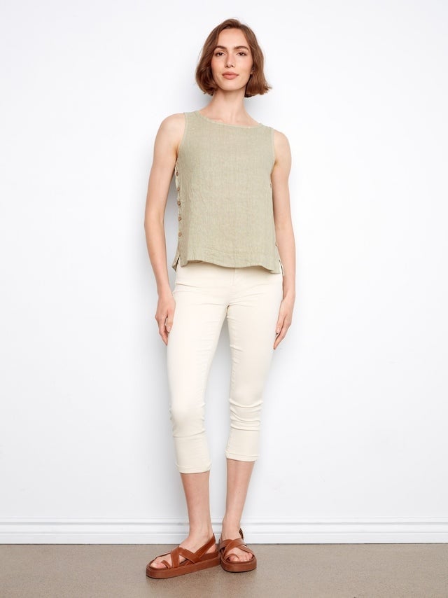 Charlie B Sleeveless Linen Top With Side Buttons