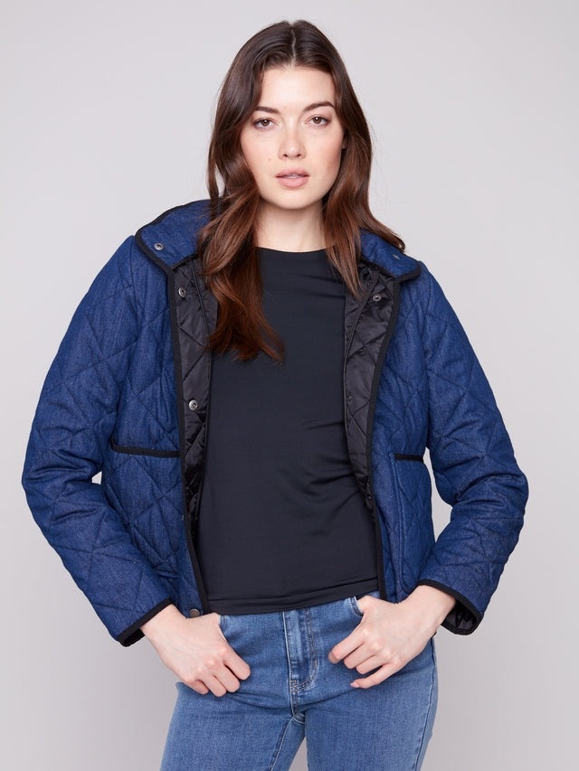 Charlie B Denim Quilted Puffer Jacket With Removable Hood