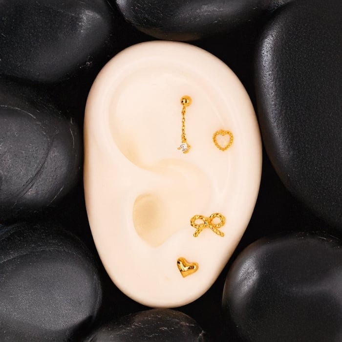 House Of Jewellery Gold Puffy Heart Flat Screwback Single Piercing