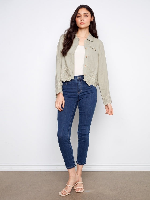 Charlie B Embroidered Hem Linen Blend Jacket