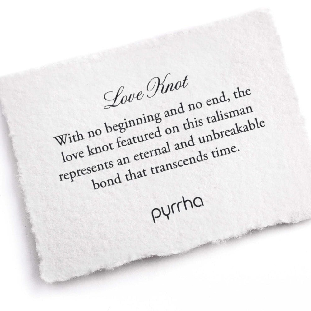 With no beginning and no end, the love knot featured on this talisman represents an eternal and unbreakable bond that transcends time.