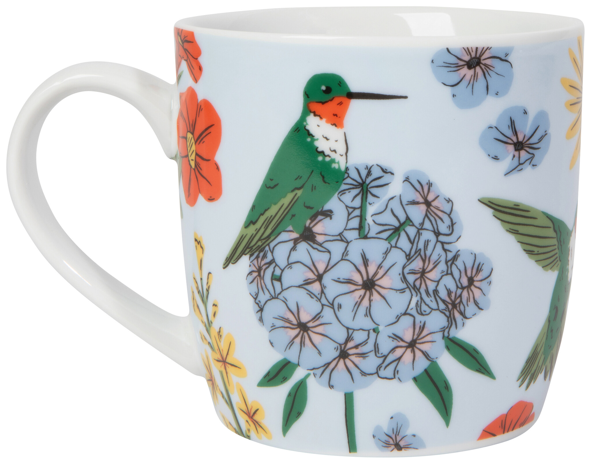 This gorgeous Hummingbird mug in elegant porcelain is a surefire conversation starter, because a good chat doesn't start over a salad. Portrayed in their delicate dance, our Hummingbird collection celebrates these tiny winged jewels and their floral favor...
