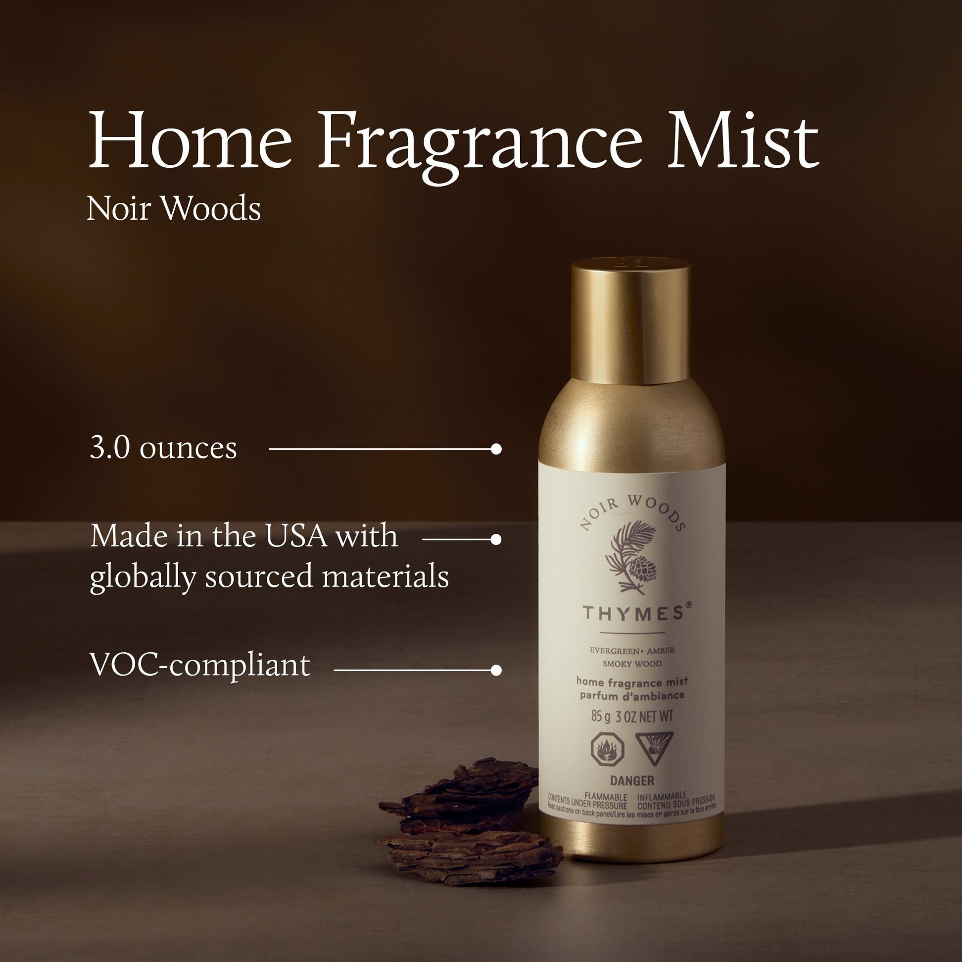 Instantly refresh your space with the grounded warmth of Noir Woods, no flame needed. This Home Fragrance Mist layers notes of fresh evergreen, smoky wood, and amber to help perfectly set the mood as the day winds down.