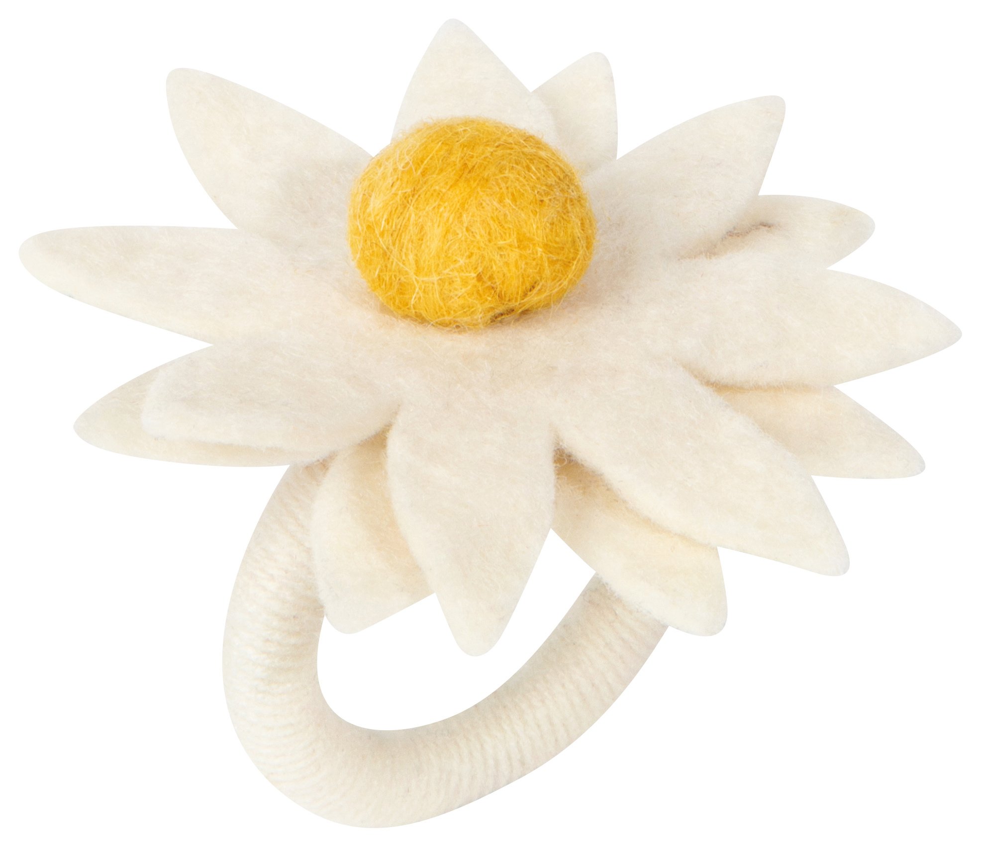 Our handcrafted, felted wool, Daisy napkin ring adds a soft touch of seasonal charm to the table. The joyful simplicity of the daisy flower will delight your guests and fill your home with cheerfulness.