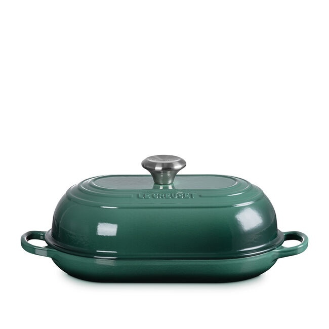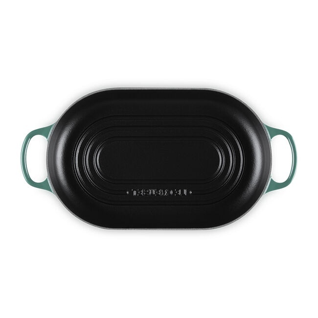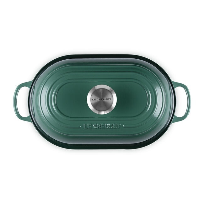 The matte black satin interior develops a natural patina over time, enhancing performance with every use, while the durable enamel exterior is easy to clean and built to withstand years of baking. A tight-fitting domed lid captures and circulates steam to encourage maximum rise and rich flavour, and the low-profile base with raised ridges promotes even browning and a beautifully crisp crust marked by the signature three-ring design. Finished with ergonomic knobs and handles for confident lifting, the Oval Bread Oven transitions effortlessly from oven to table.