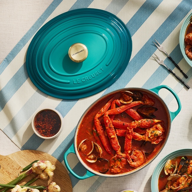 The perfect shape for most larger roasts and poultry, the Oval French Oven is an ideal piece any time of year for preparing classics like coq au vin, or a simple roast chicken and comes in particularly handy during the holidays.