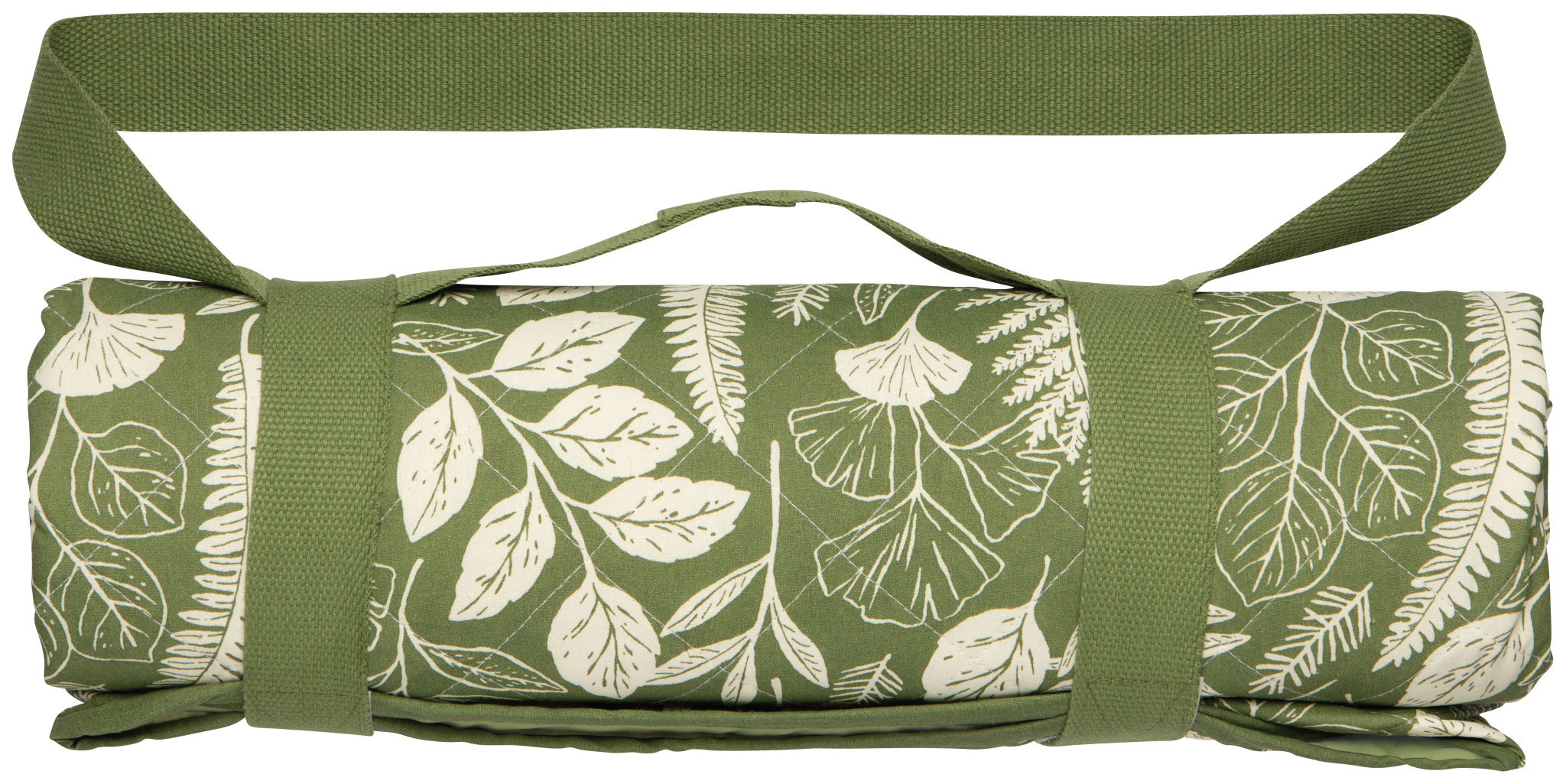 Crafted from our 100% recycled Clean Coast material—comprised of ocean-bound plastic repurposed into fabric—this roll-up Fern & Frond picnic blanket with twill strap, seats two comfortably.