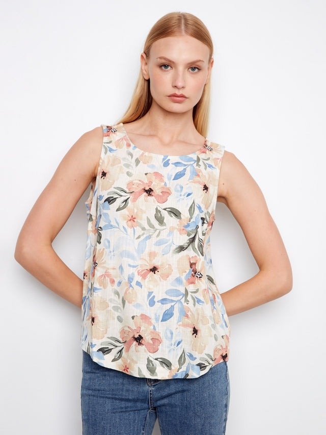 Charlie B Printed Sleeveless Linen Blend Blouse