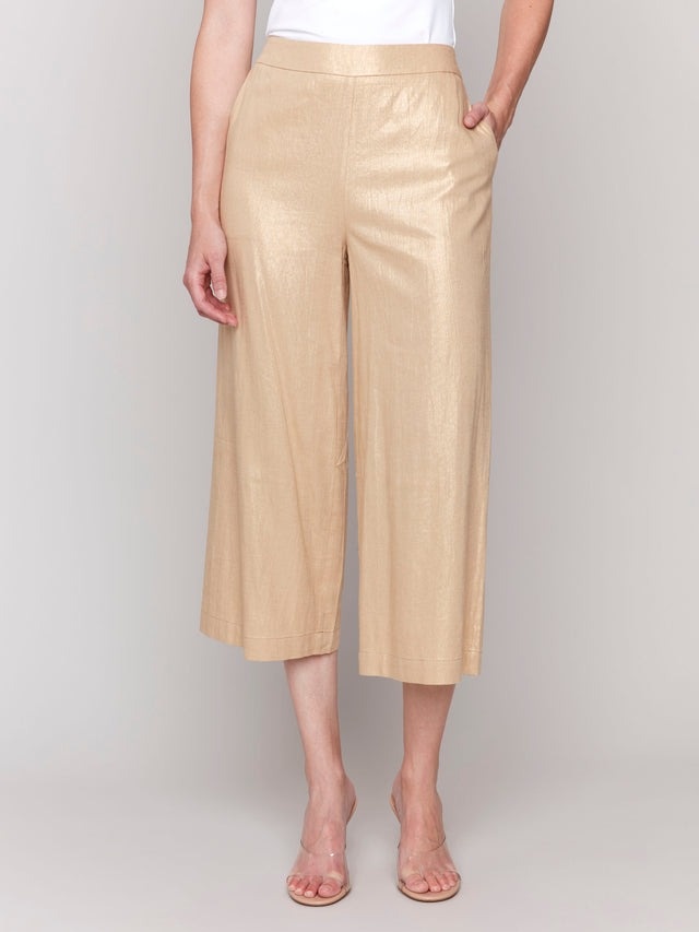 Charlie B Foil Linen Blend Cropped Pull-On Pants