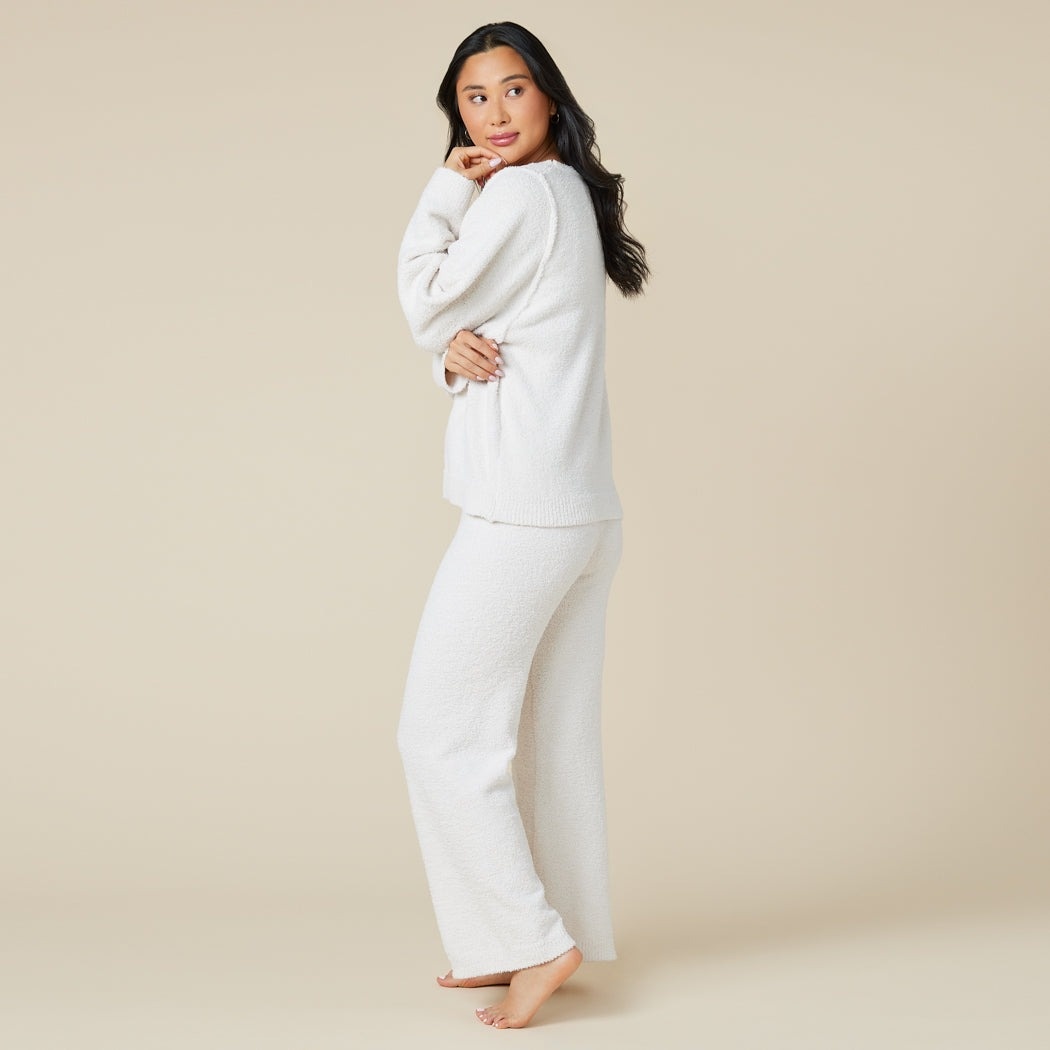 Softies' best-selling marshmallow fabric in a flattering two-piece lounge set. This contemporary women’s set, with its beautifully detailed reverse stitch shoulder seam top and matching long pant, offers unmatched softness in a fashionably cozy silhouette...