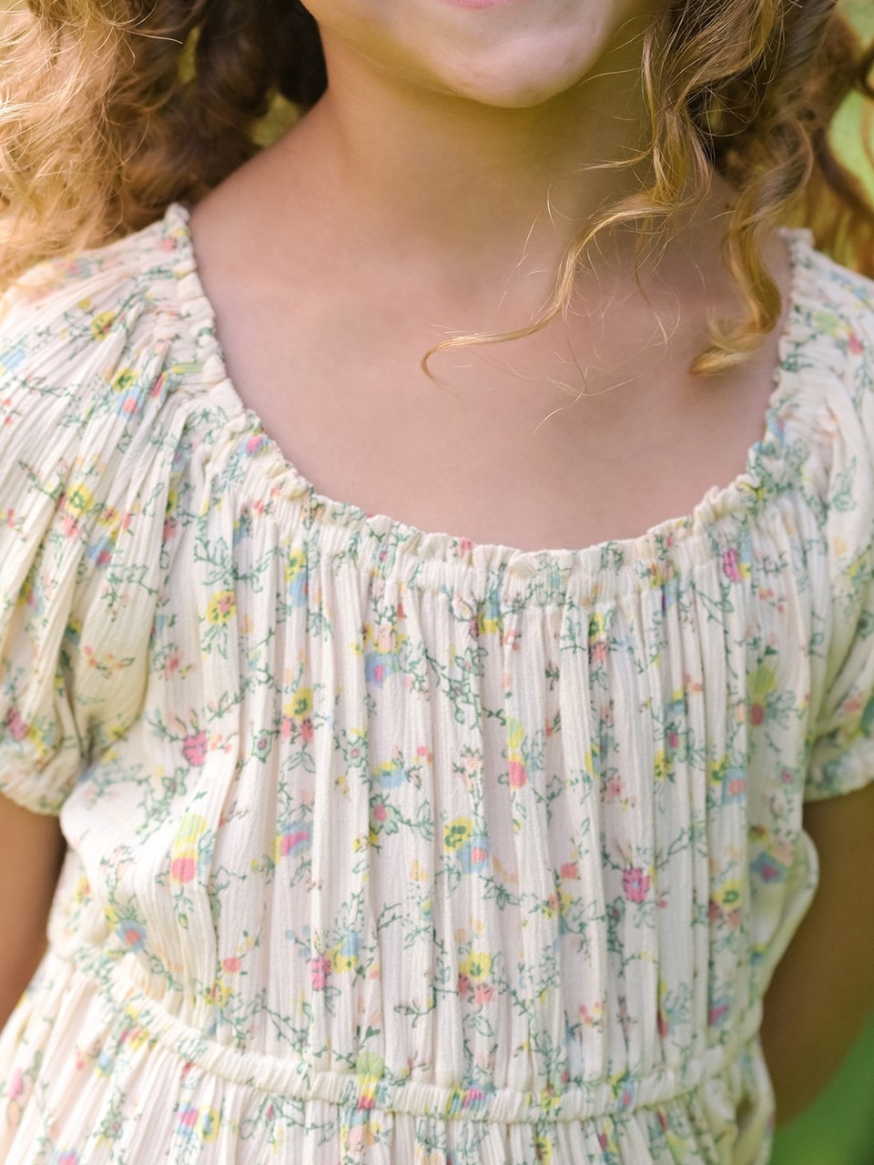Step into whispered elegance! A timeless print on a cream ground brought with a lovely gathered bodice in a delectably flowing silhouette.