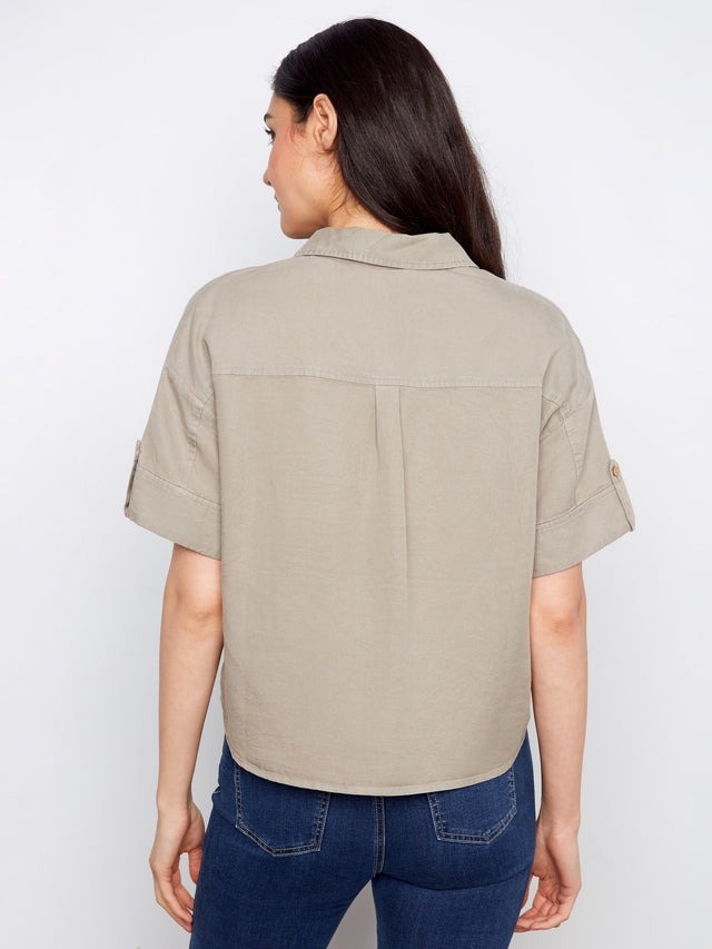 Charlie B Short Sleeve Button-Front Tencel Shirt