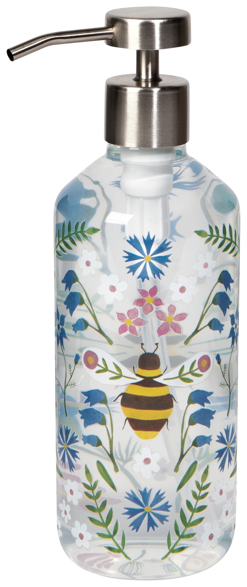 With a fresh pattern, easy-care glass, and stainless steel, the printed Bee Garden soap dispenser makes a splendid sink-side companion. Our Bee Garden collection pays tribute to nature's essential helpers.