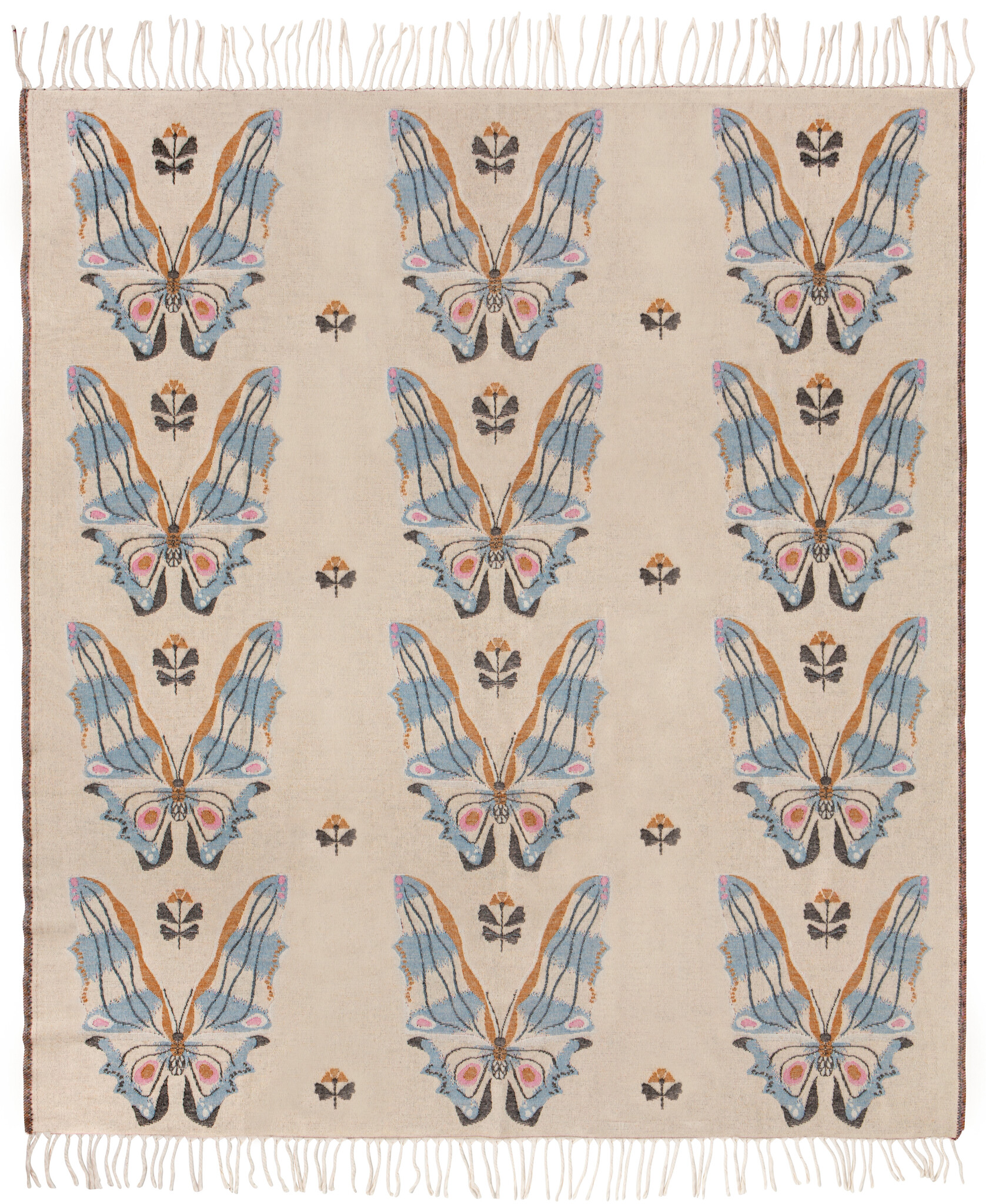 Woven with an original Danica Studio design and finished with hand-twisted tassels, our washable cotton throw enhances the home with a welcome layer of warmth and whimsy. Spring dawns and a sunrise of color graces the butterflies wings of this design from the Aurora collection.