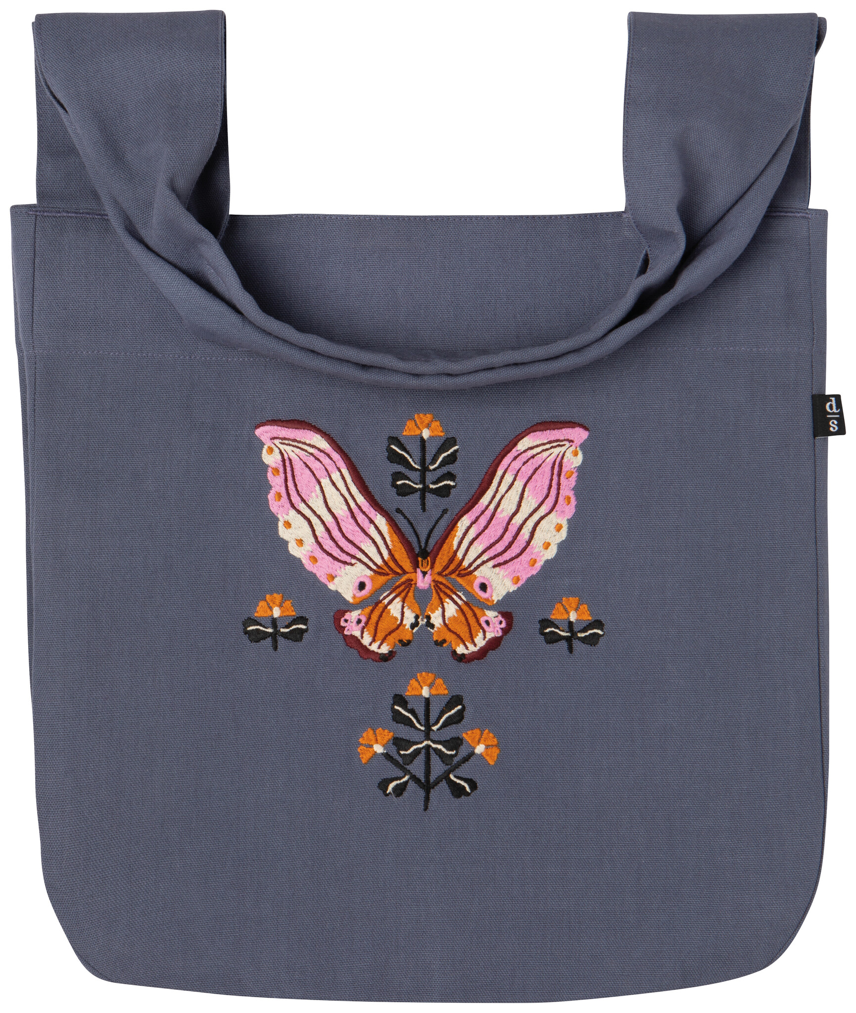 The square-shaped Aurora To & Fro tote with extra-wide handles is comfy to carry and features an inside pocket. Spring dawns and a sunrise of color graces the butterflies wings of this design from the Aurora collection.