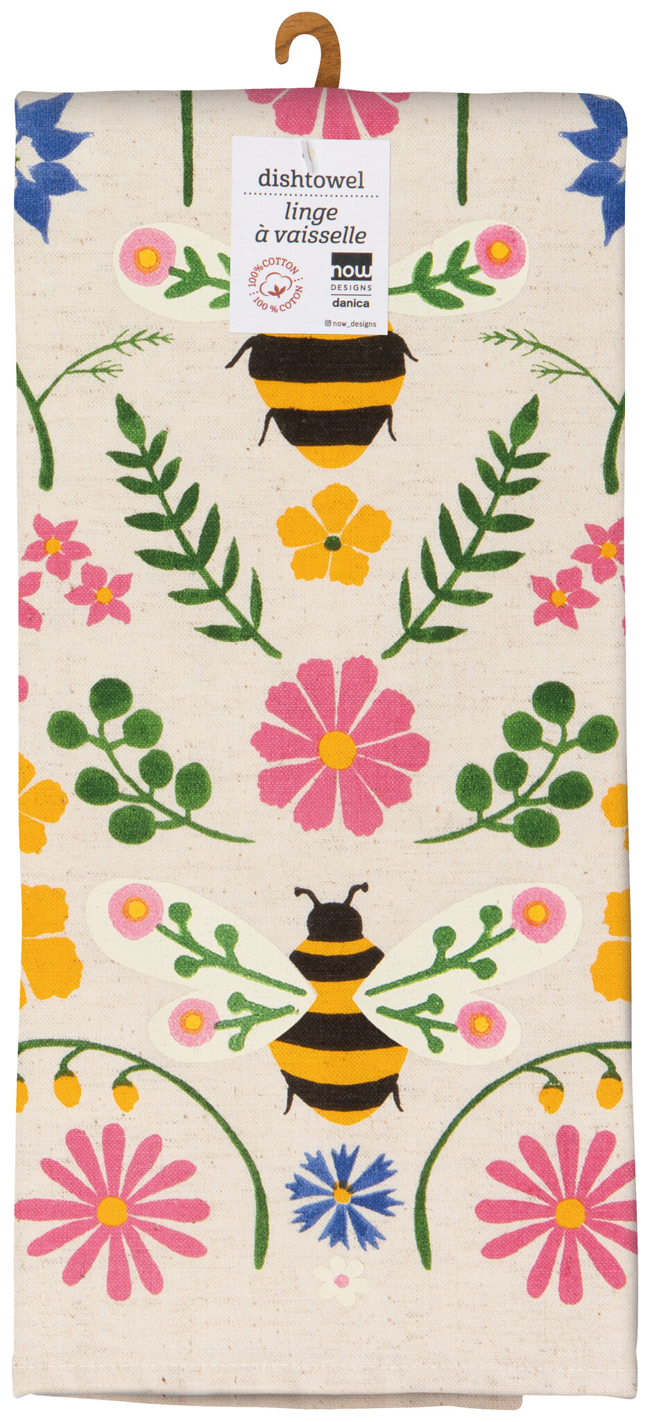 With a folk art-inspired design featuring bees buzzing among the wildflowers, this cheerful dishtowel brings garden-fresh delight to your space. Symmetry highlights the natural harmony of pollinators and plants.