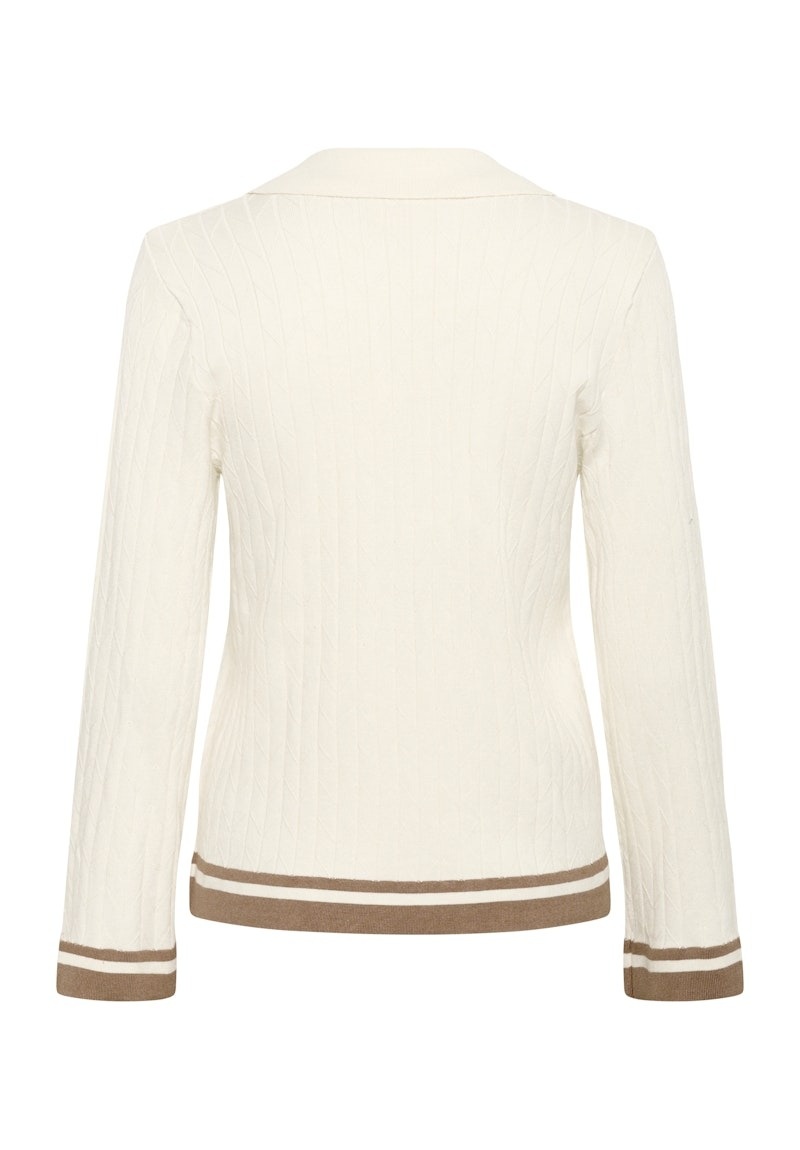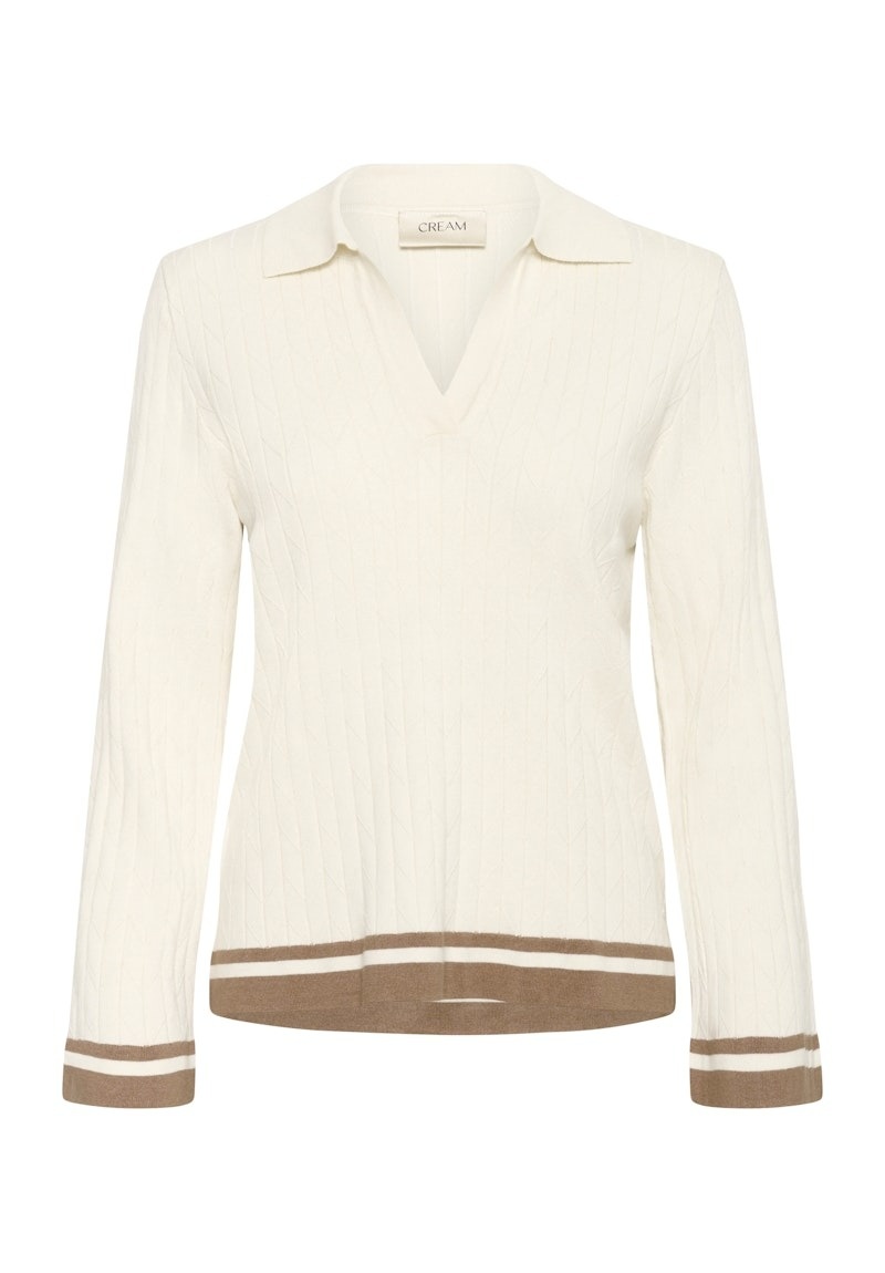 This women's knit pullover sweater features a classic relaxed fit, V-neck with collar, and long sleeves. Subtle rib-knit design and contrast trim offer versatile style and comfort for everyday wear.